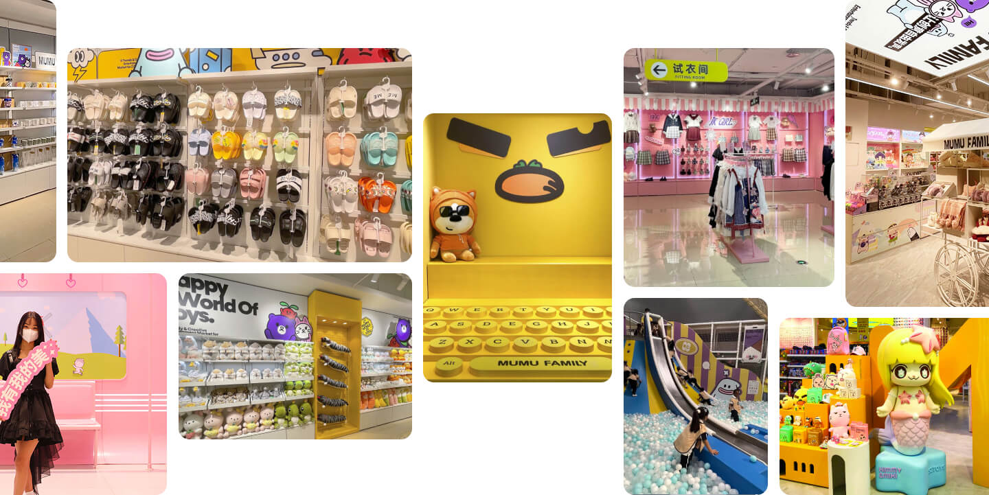 MUMU FAMILY richtet sich an Familien mit Kindern und kombiniert eine große Auswahl an Kinderspielzeugen mit kreativ gestalteten Spielbereichen. Farbenfrohe Dekorationen und interaktive Erlebnisse schaffen eine inspirierende Atmosphäre, die den Einkauf zu einem unterhaltsamen Abenteuer macht.